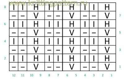 - Вязальный ряд должен завершаться двумя лицевыми петлями перед последней изнаночной петлей. В таблице приведено описание необходимого количества лицевых и изнаночных петель для того, чтобы вязка получилась красивой и правильной.