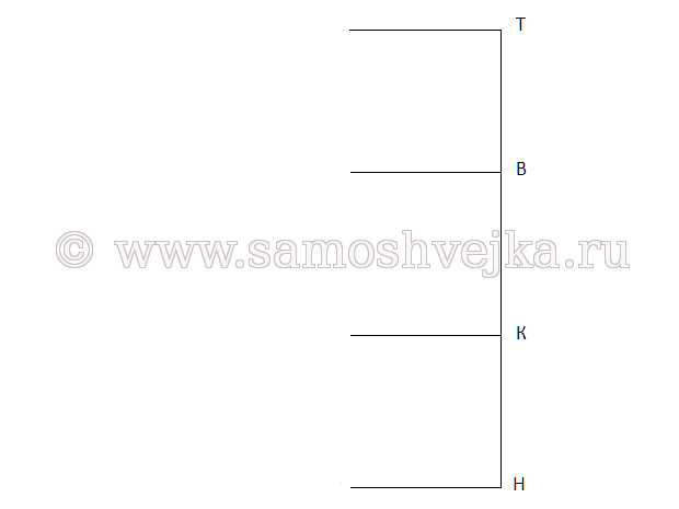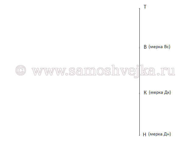 На листе бумаги в правом верхнем углу отметить точку Т, отступив от верха и правого края около 10 см. Провести вниз линию, по которой отложить мерки: